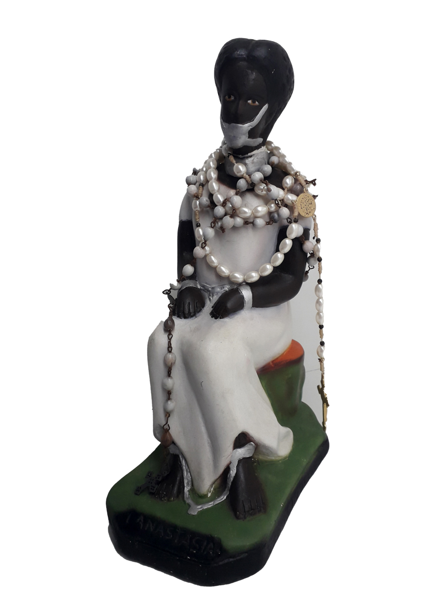 Obra esculpida de carácter religioso, cujas peças estão representadas em igrejas, santuários, capelas, oratórios, terreiros, congas e outros espaços religiosos. As esculturas religiosas geralmente trazem em sua representação características próprias da pessoa ou divindade representada. Podem aparecer em grupos ou uma só figura.