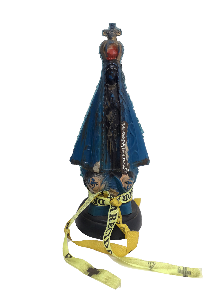 Obra esculpida de carácter religioso, cujas peças estão representadas em igrejas, santuários, capelas, oratórios, terreiros, congas e outros espaços religiosos. As esculturas religiosas geralmente trazem em sua representação características próprias da pessoa ou divindade representada. Podem aparecer em grupos ou uma só figura.