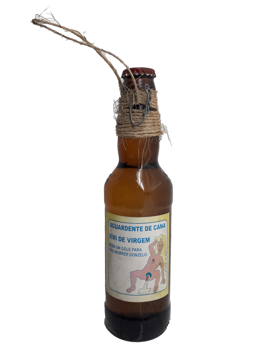 Home/Acervo museológico/Garrafa Garrafa MM_0124 Baixar Informações Gerais Número de registroMM.0124DenominaçãoGarrafaCategoria do objeto03. ComércioCódigo II CategoriaIII.034DescriçãoPequena garrafa de cachaça com vidro marrom e rotulo branco com imagem de uma mulher urinando. Tendo em seu gargalo uma corda enrolada e uma chapinha de garrafa para fechar. Origem do Objeto Possuidor precedenteMarcelo Vieira Local de Origem EstadoPernambucoMunicípioOlinda Informações físicas MaterialVidroTécnicaVidrariaHá marcas e inscrições?SimDescrição da marca ou inscriçãoAGUARDENTE DE CANA, XIXI DE VIRGEM, BéBA UM GE PARA NÂ MRRER DONZELONúmero de peças1Há imagem digital?sim Outros Histórico do uso museológico01/01/2013 - Exposição de longa duração do Museu da Maré - Tempo do Cotidiano - Bar do Seu Francisco. Localização no Museu Localização atual08. Tempo do Cotidiano botequimTipo de localExposição permanente > Tempo do cotidiano > BotequimLocalização permanenteReserva Técnica/Acervo Museu da Maré Item anteriorGarrafa Próximo itemGarrafa